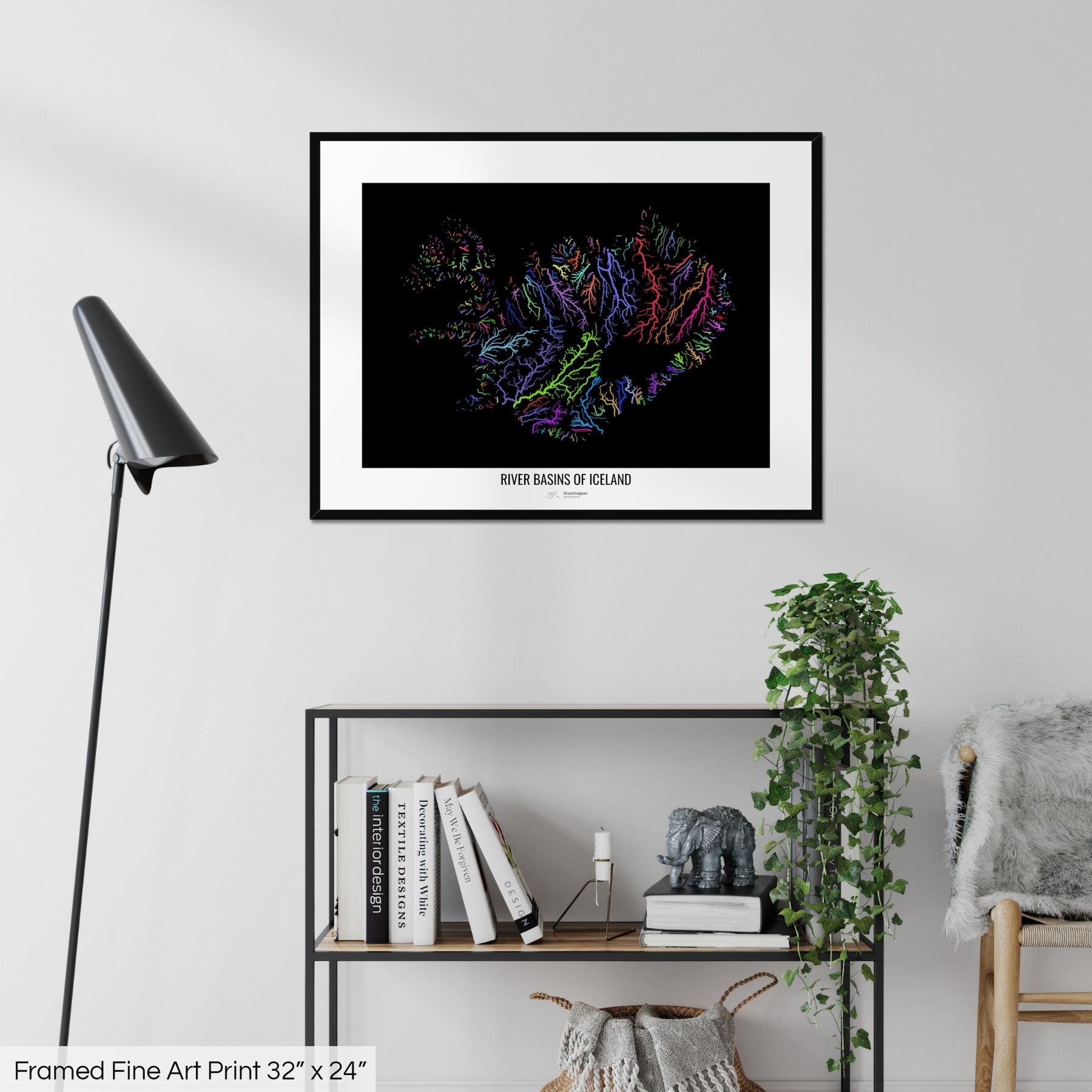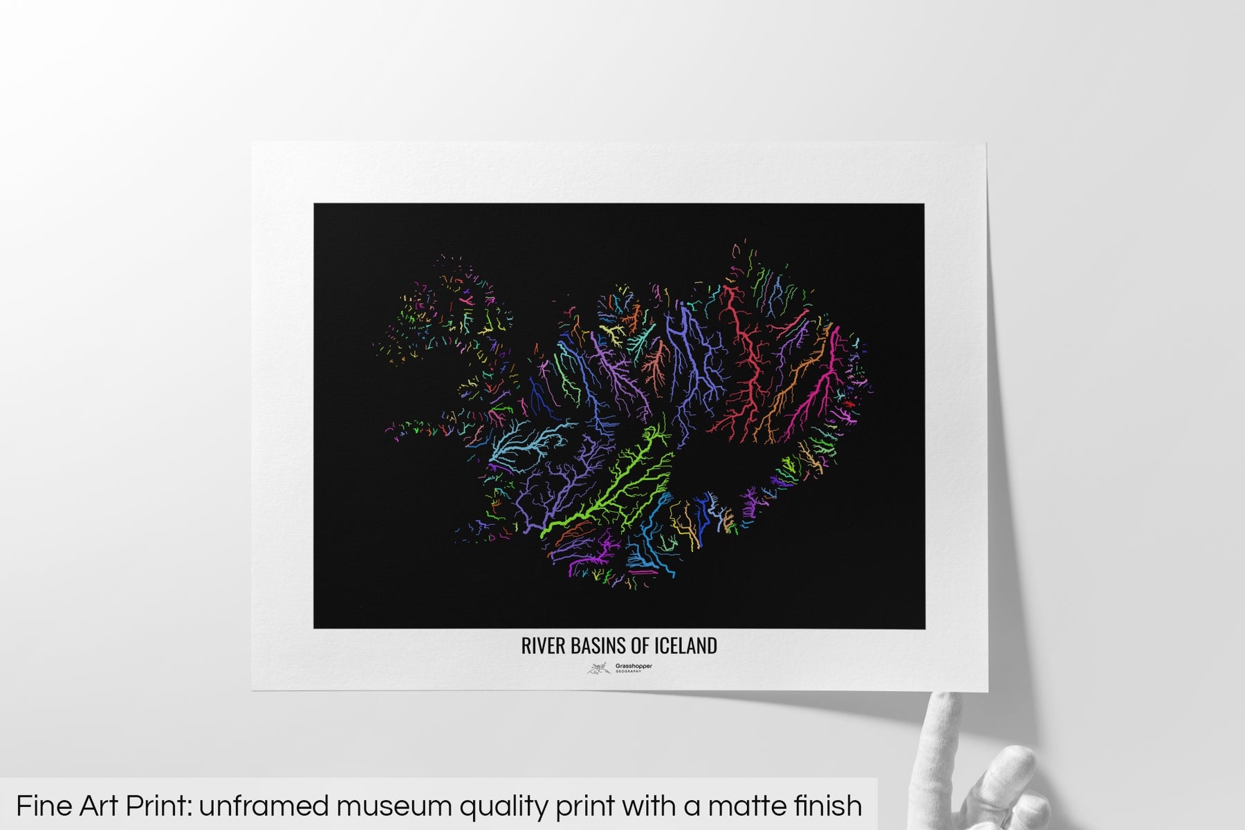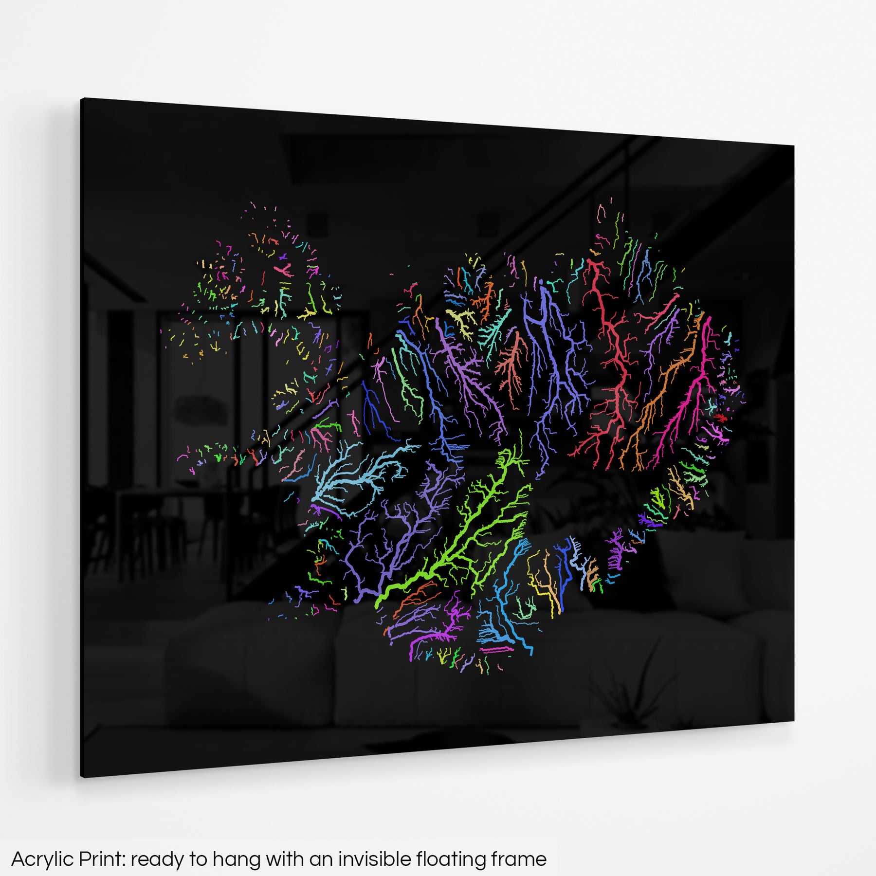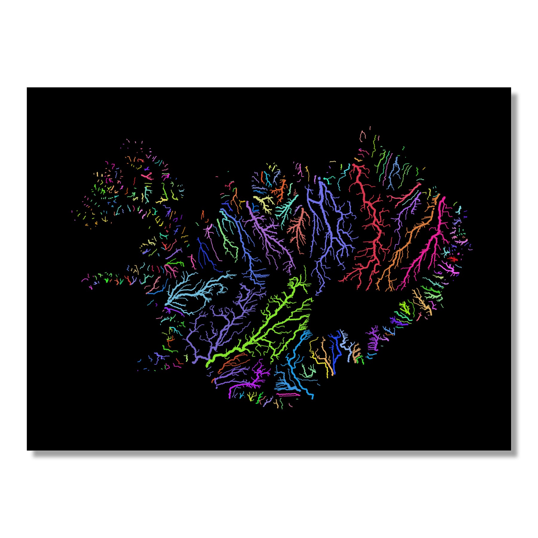 Iceland - River basin map, rainbow colours - Wall Art