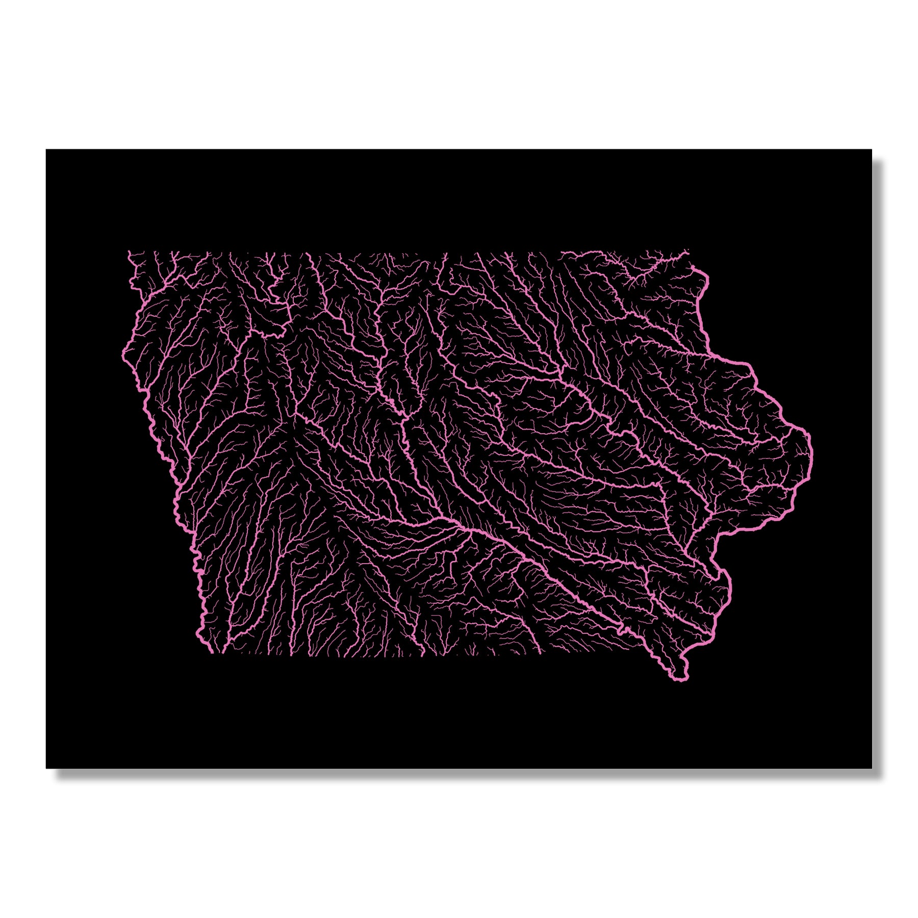 This high-resolution river basin map shows each catchment area in a different colour. Its vibrant colour scheme makes this map a lively addition to any space.