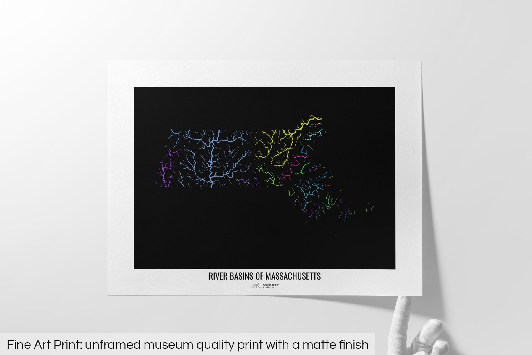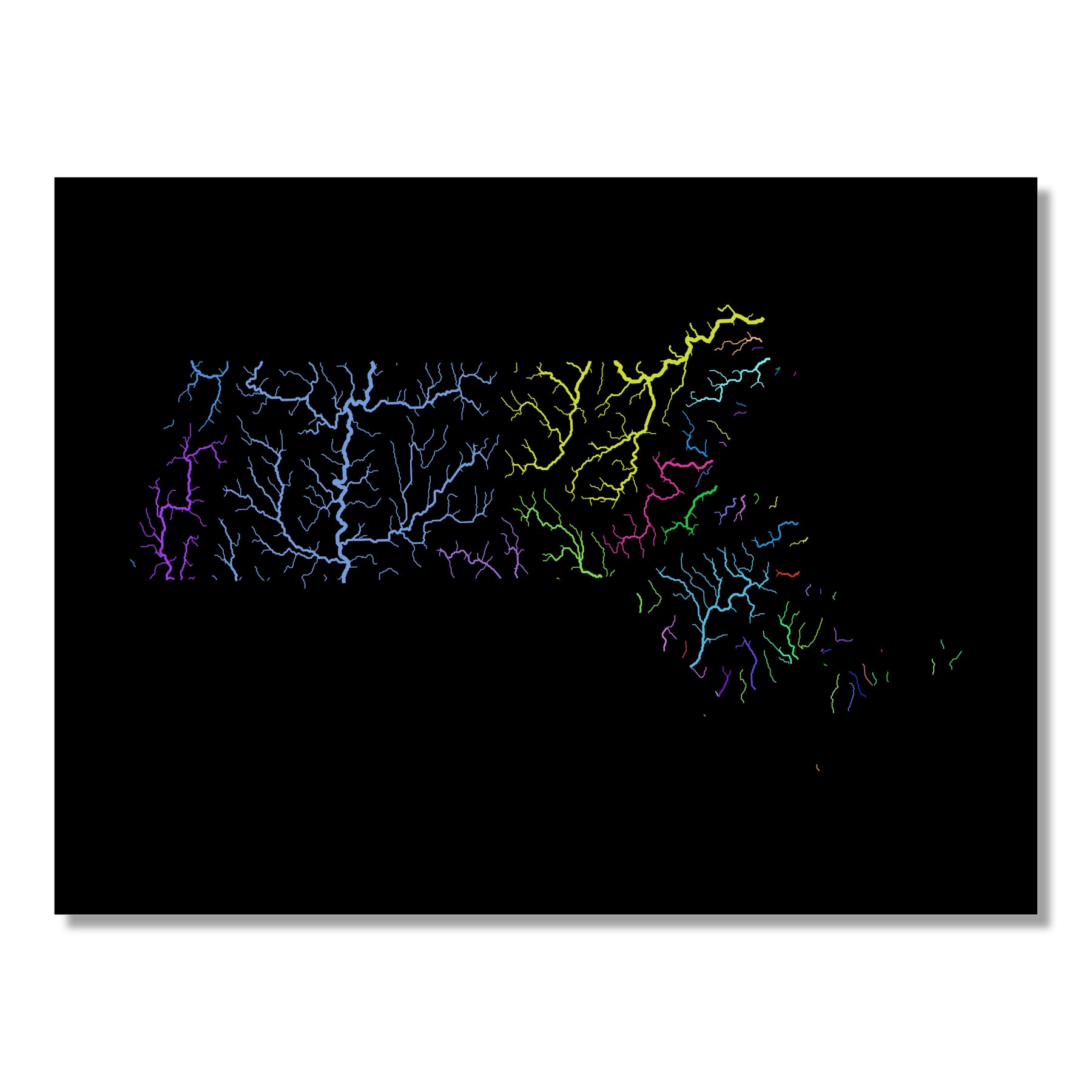 Massachusetts - River basin map, rainbow colours - Wall Art