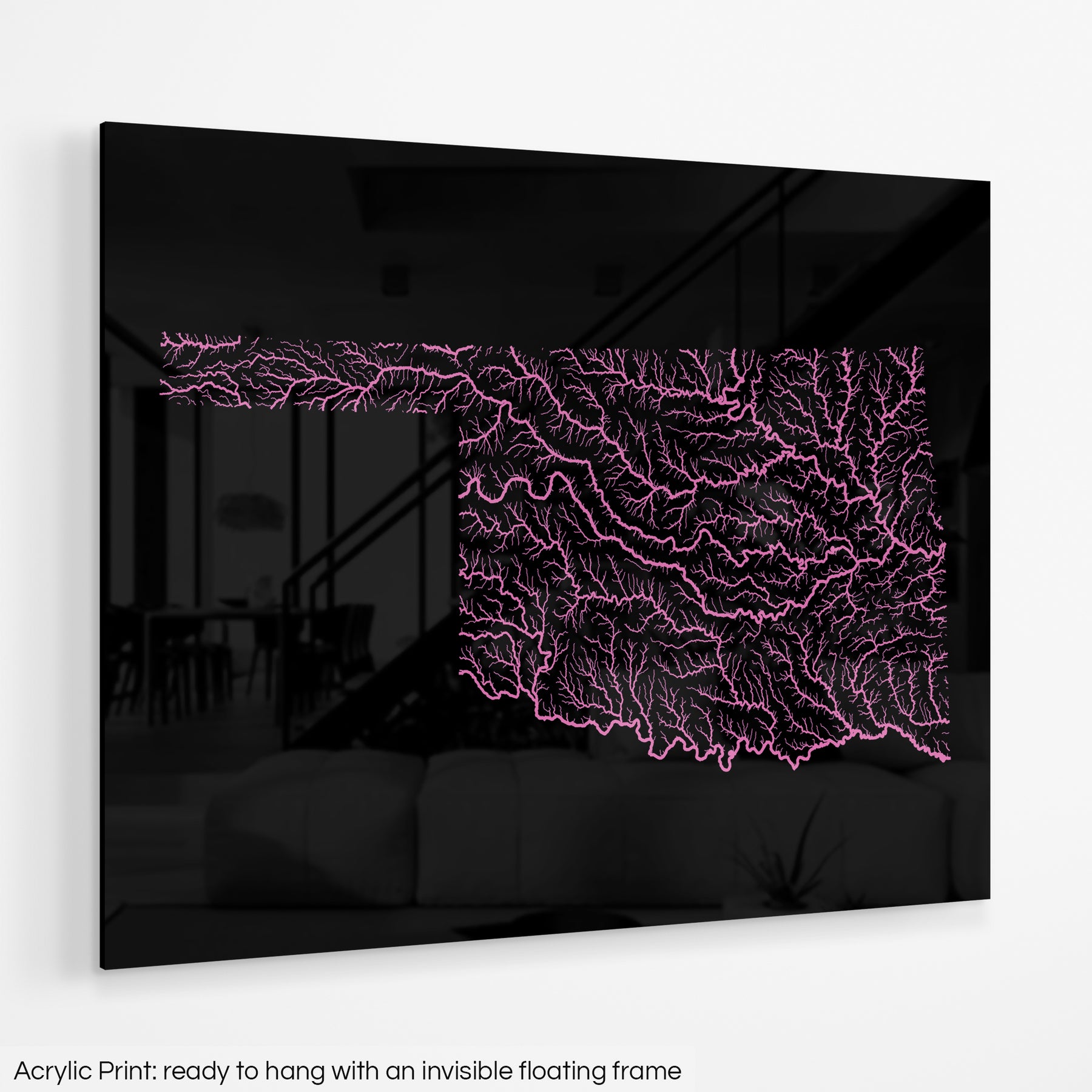 A frame free wall art option that creates a dramatic focal point for any wall. The 3D luminosity of the polished surface brings our maps to life with vibrant colors that will meet the highest expectations.