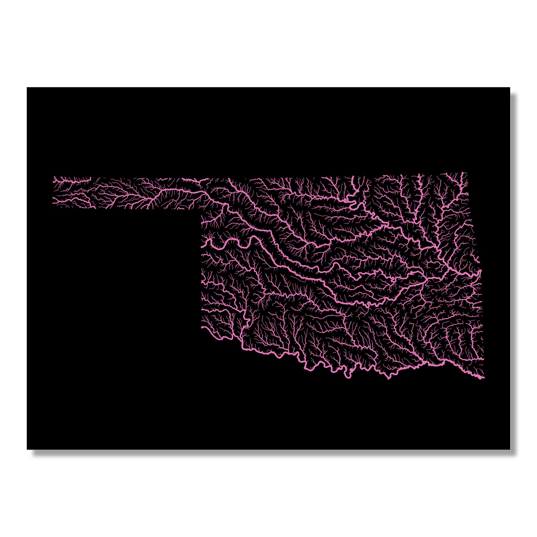 Oklahoma - River basin map, rainbow colours - Wall Art