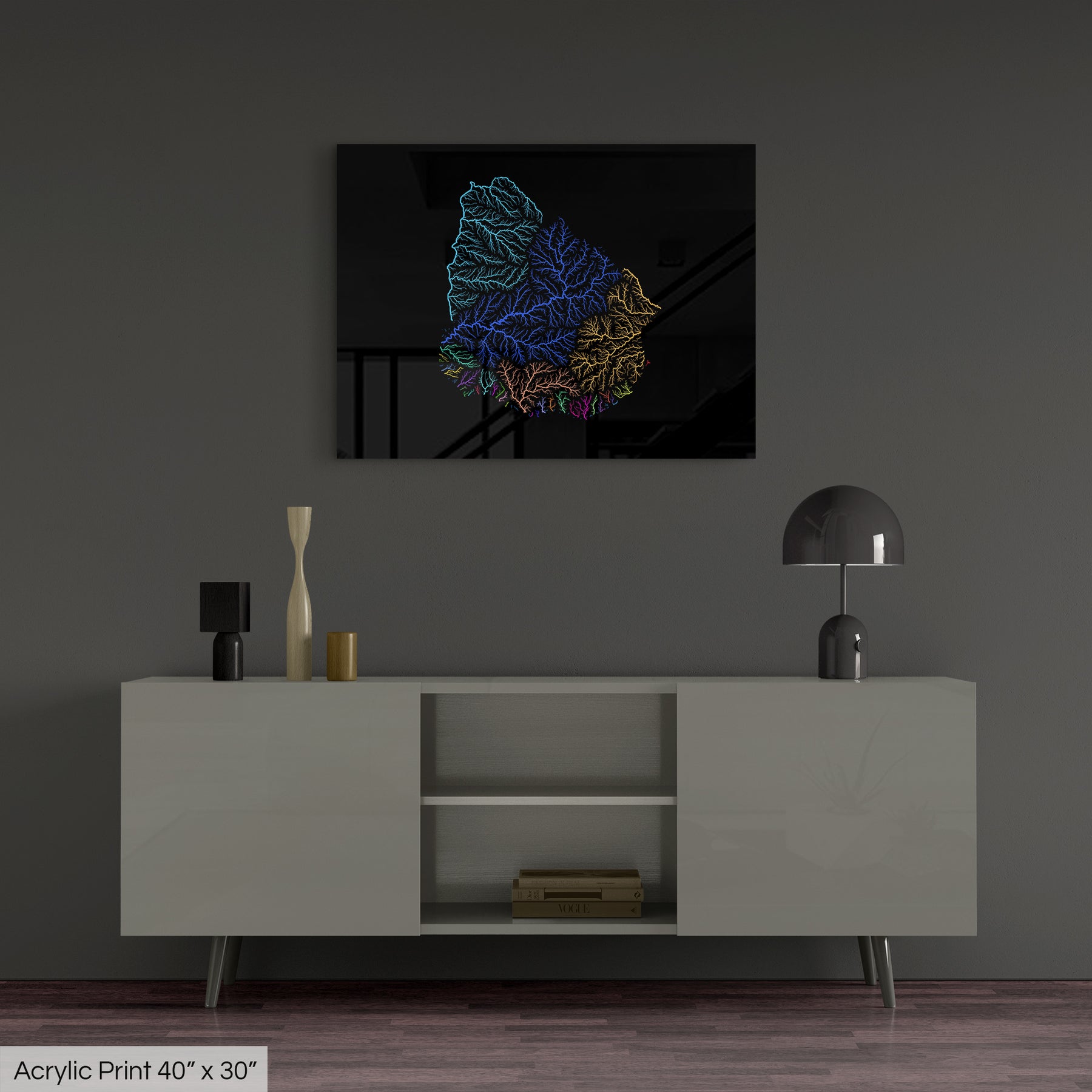 The fine art Giclée print is hand mounted onto a 10mm thick, premium polished, high-gloss acrylic glass that results in a vibrant finish. The transparency of the acrylic enhances the colours and details of the artwork, creating a stunning visual effect that will make a bold statement in any space.
