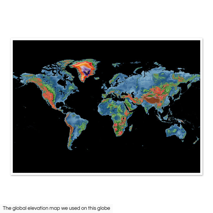 Grasshopper Geography's vibrant elevation maps found their natural home on the globes of prestigious globe manufacturer Columbus Globes.