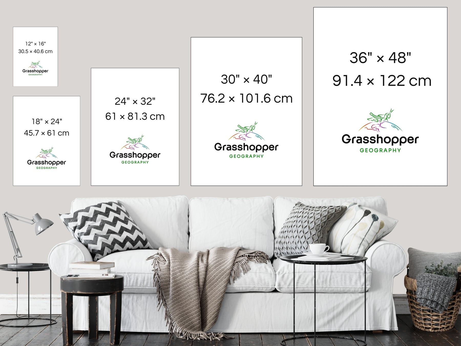 The museum-quality fine art paper exhibits intricate detail, and professional Giclée printing ensures the deepest blacks and the most vibrant colours. Crafted from sustainably sourced wood, the frames are available in a range of colours to match your map and interior.