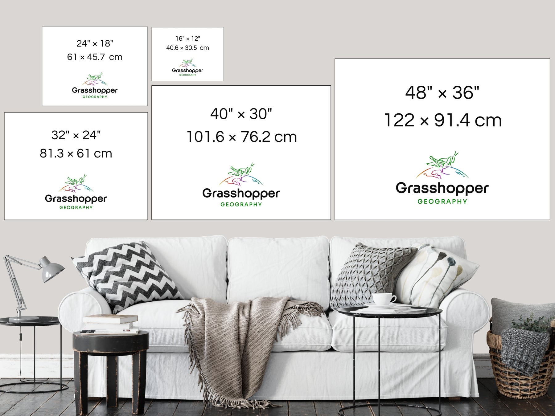 Refresh your walls with this unique cartographic art piece. Each map is made to order and shipped directly to you with free worldwide delivery. Select your preferred format and size above to get started.