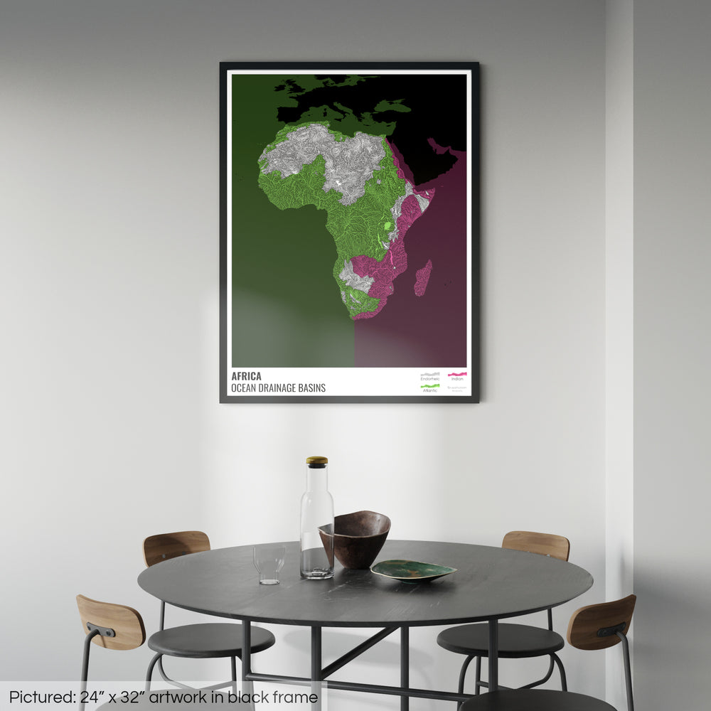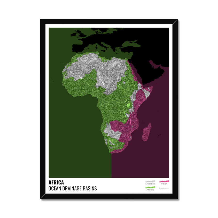 Африка - Карта океанического водосборного бассейна, черная с легендой, версия 2 - Рамочная печать