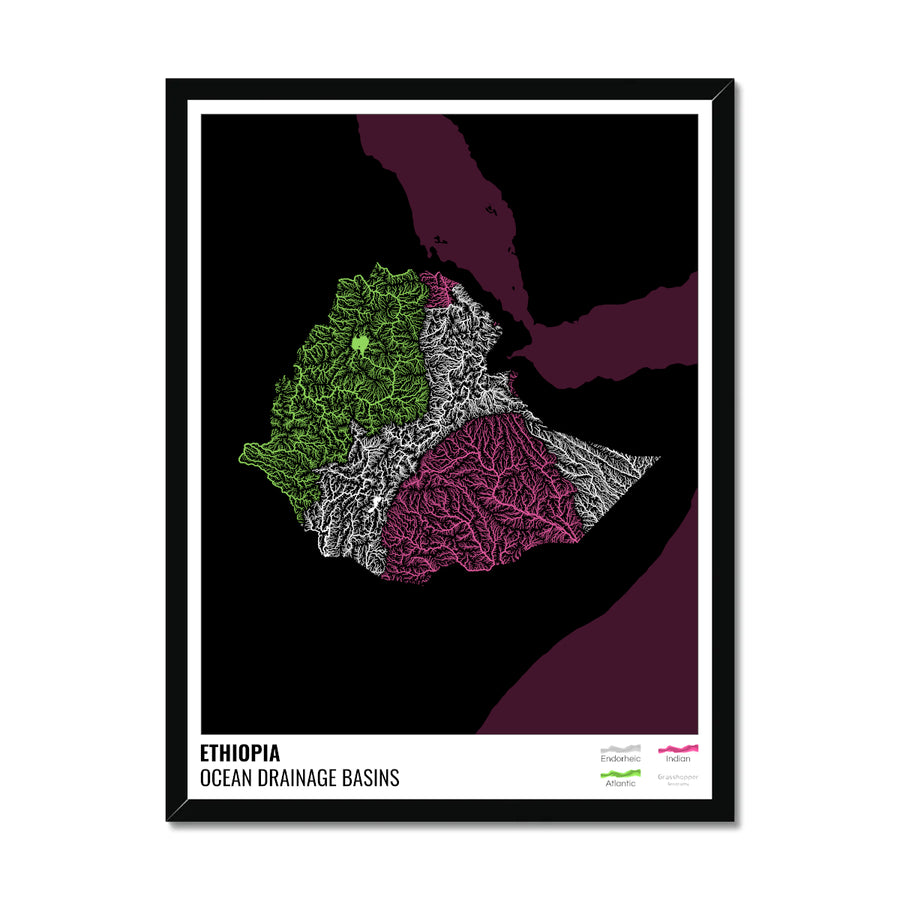 Эфиопия - Карта океанического водосборного бассейна, черная с легендой, версия 2 - Рамочная печать