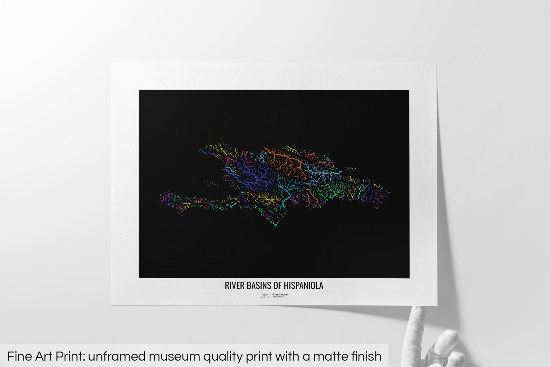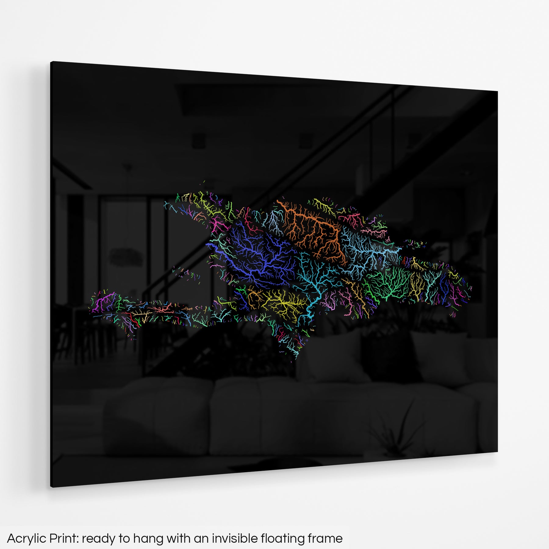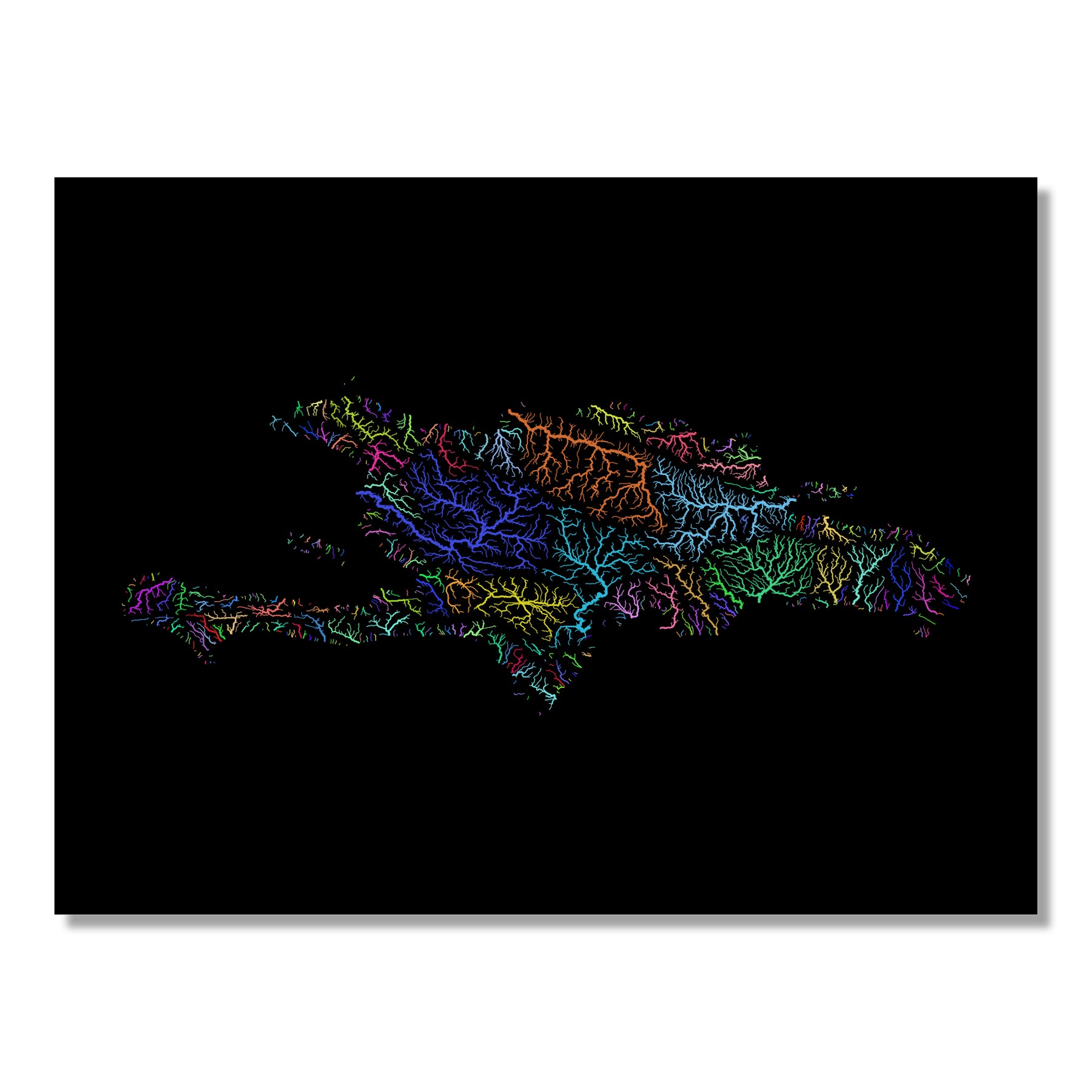 Hispaniola - River basin map, rainbow colours - Wall Art