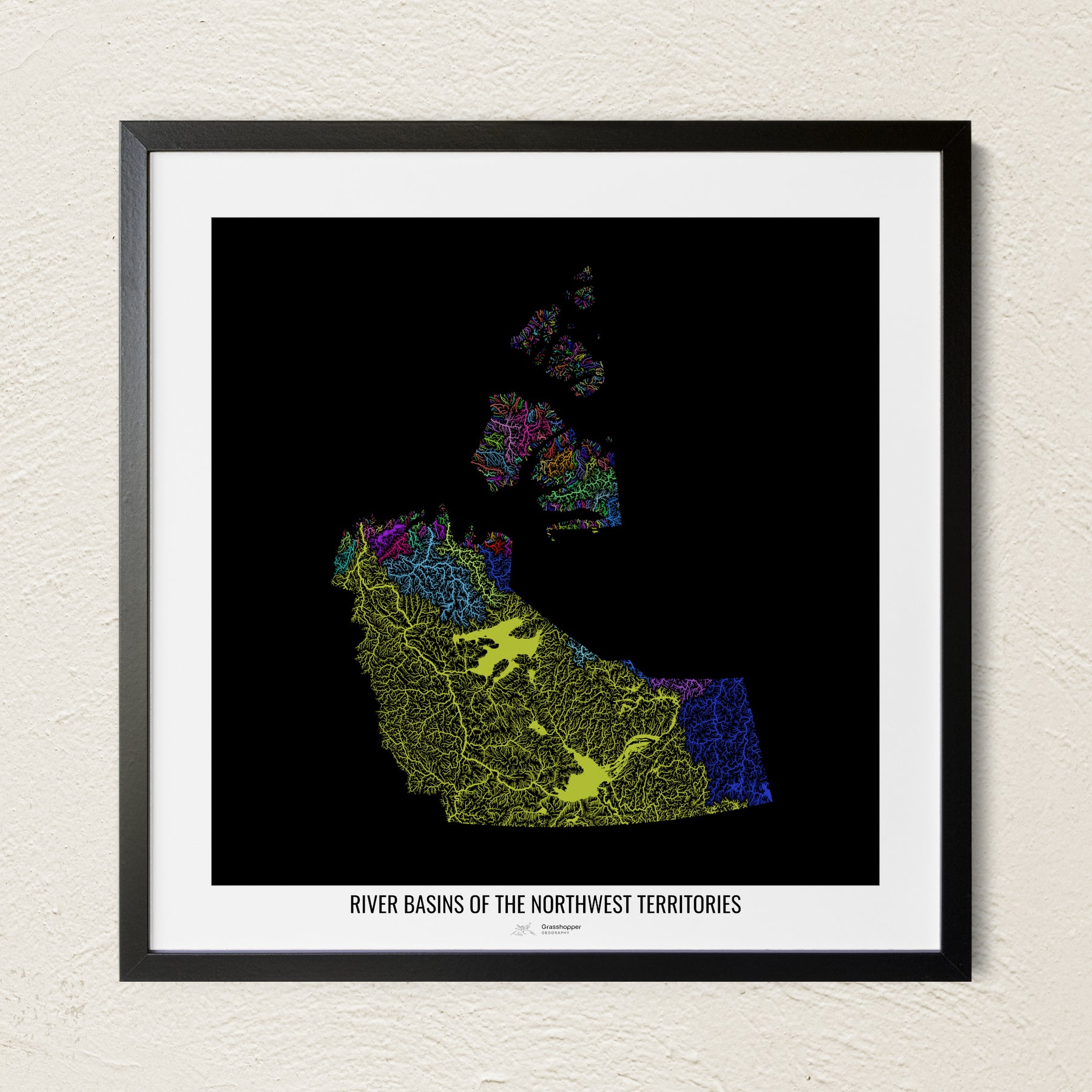 Northwest Territories - River basin map, rainbow colours - Wall Art
