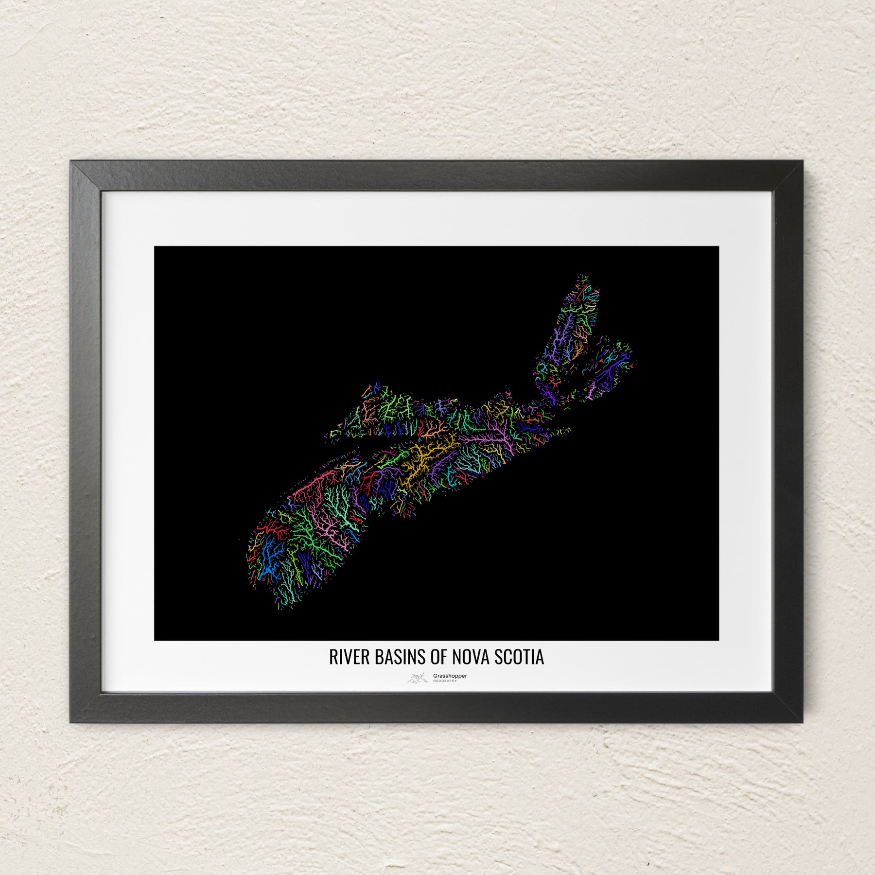 Nova Scotia - River basin map, rainbow colours - Wall Art