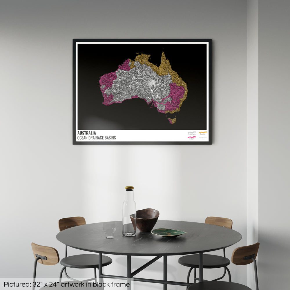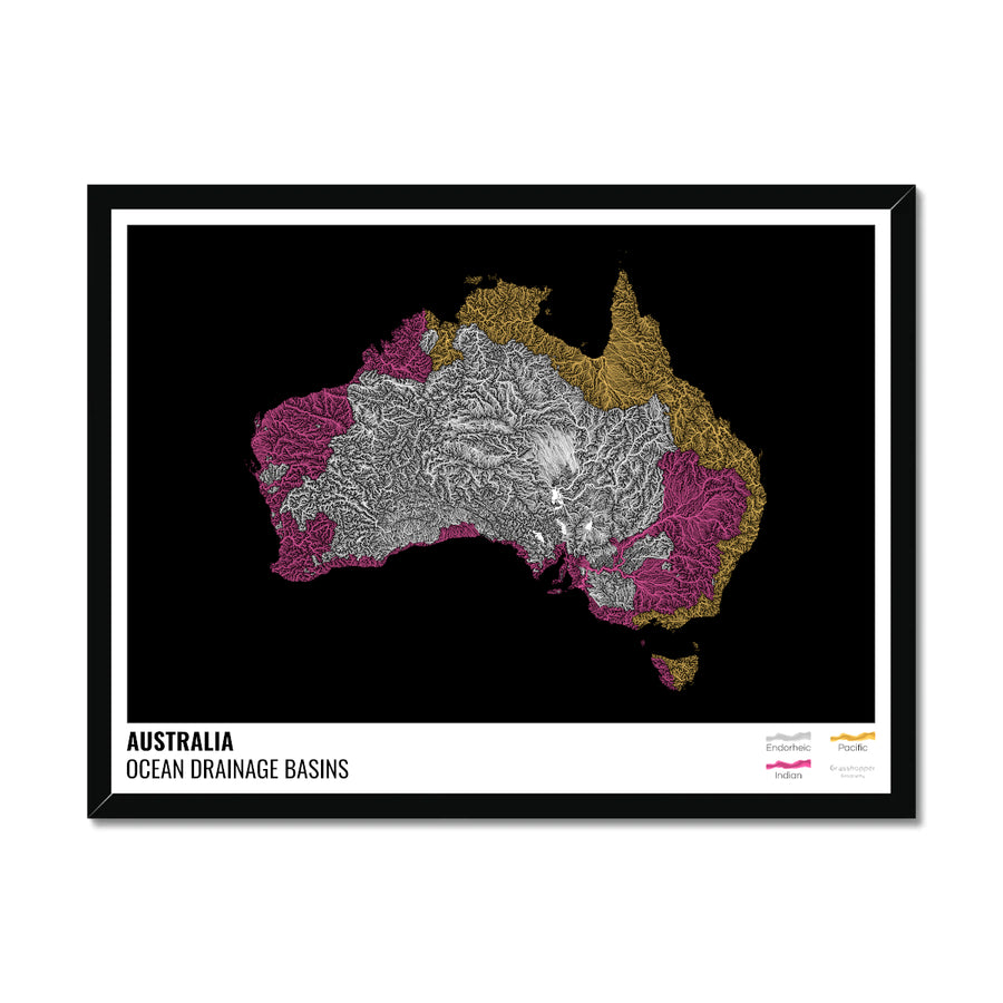 Австралия - Карта океанического водосборного бассейна, черная с легендой, версия 1 - Рамочная печать