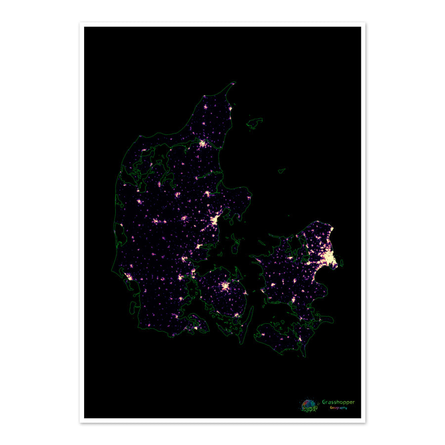 Дания - Тепловая карта плотности населения - Fine Art Print