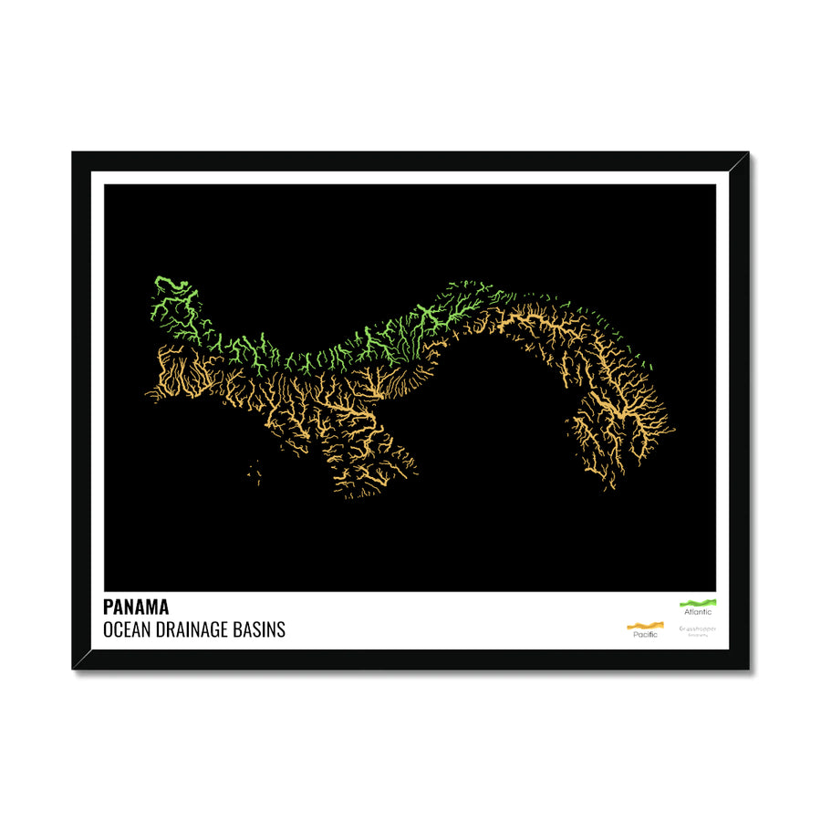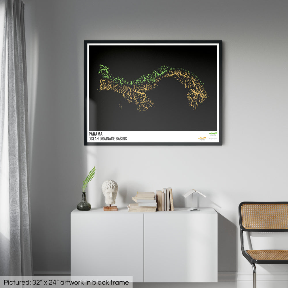 Панама - Карта океанического водосборного бассейна, черная с легендой, версия 1 - Рамочная печать