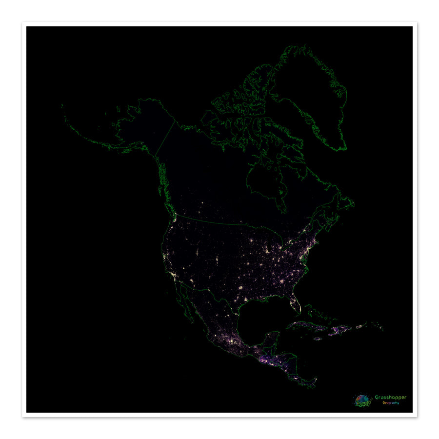 Северная Америка - Тепловая карта плотности населения - Художественная печать