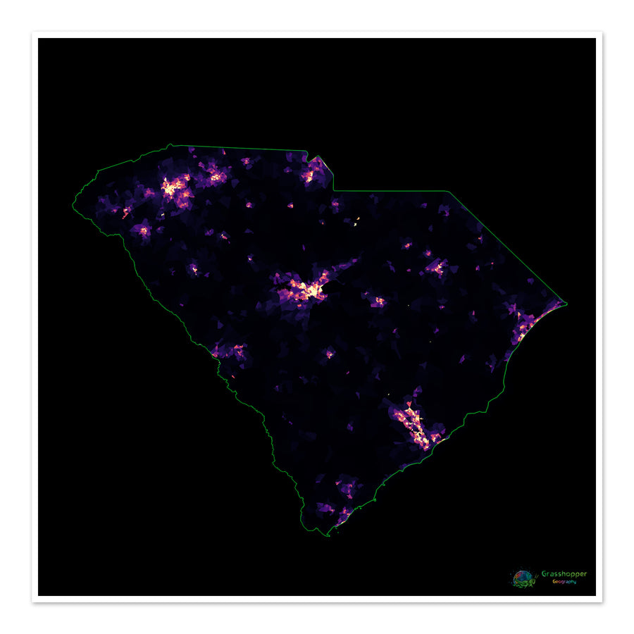 Южная Каролина - Тепловая карта плотности населения - Fine Art Print