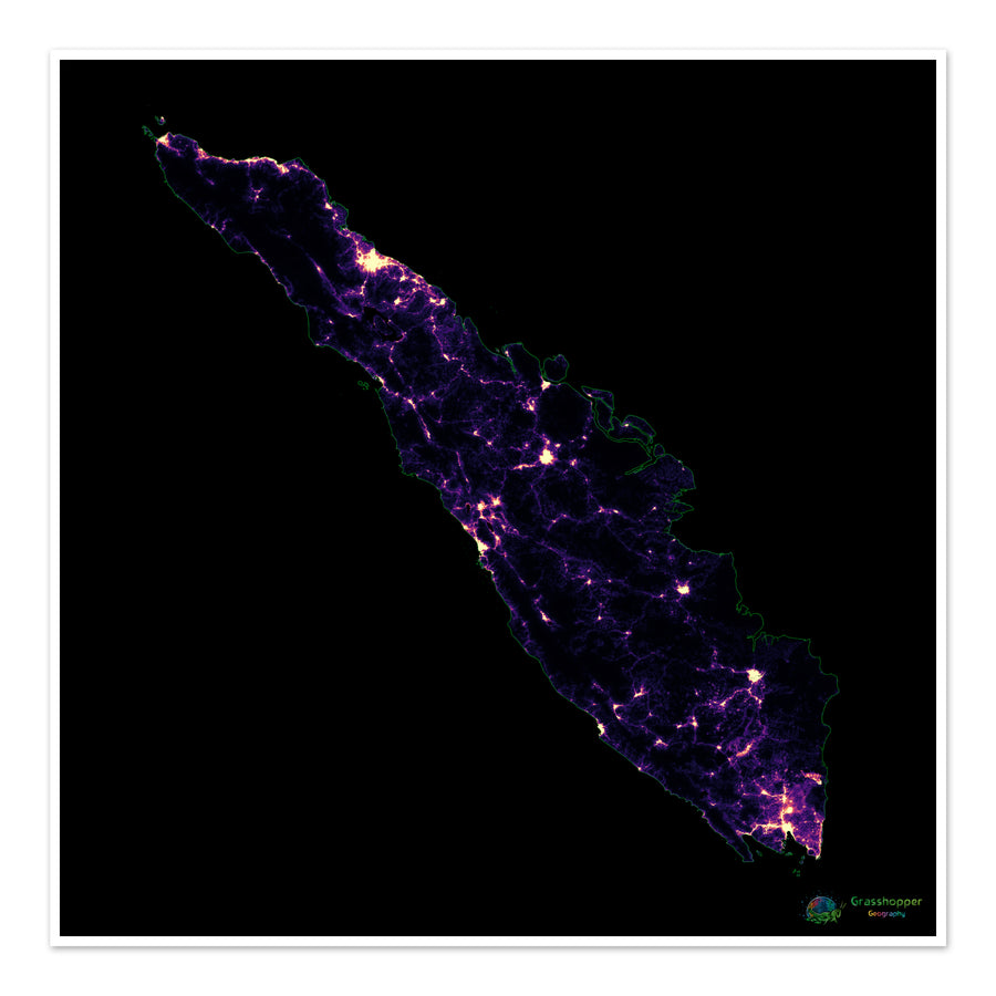 Суматра - Тепловая карта плотности населения - Художественная печать