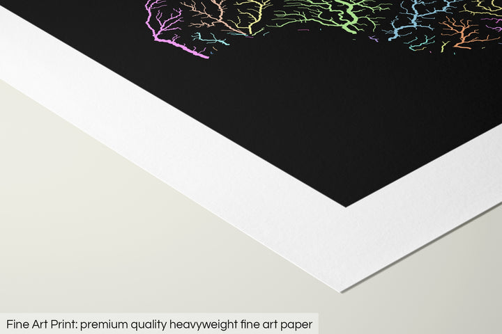 The museum-quality fine art paper exhibits intricate detail, and professional Giclée printing ensures the deepest blacks and the most vibrant colours. Crafted from sustainably sourced wood, the frames are available in a range of colours to match your map and interior.