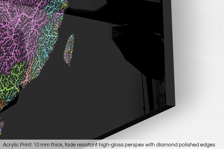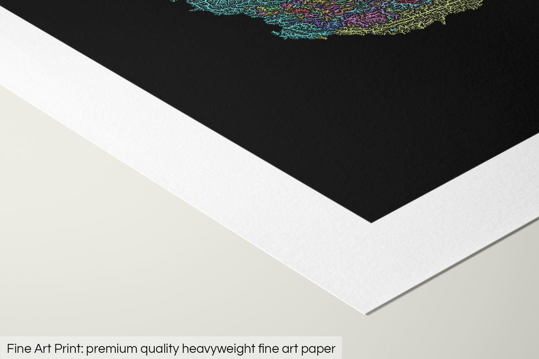 China and Taiwan - River basin map, pastel colours - Wall Art