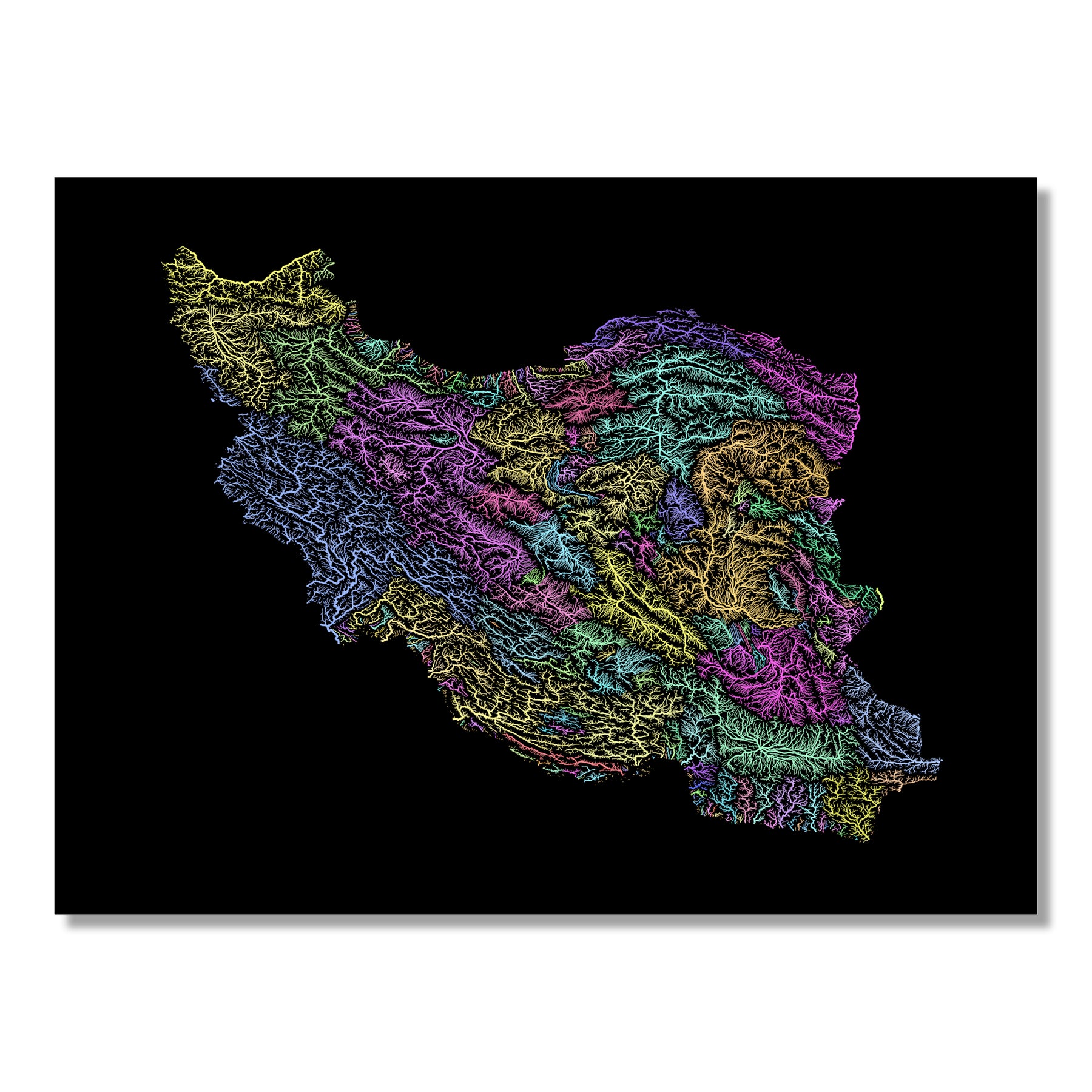 Iran - River basin map, pastel colours - Wall Art