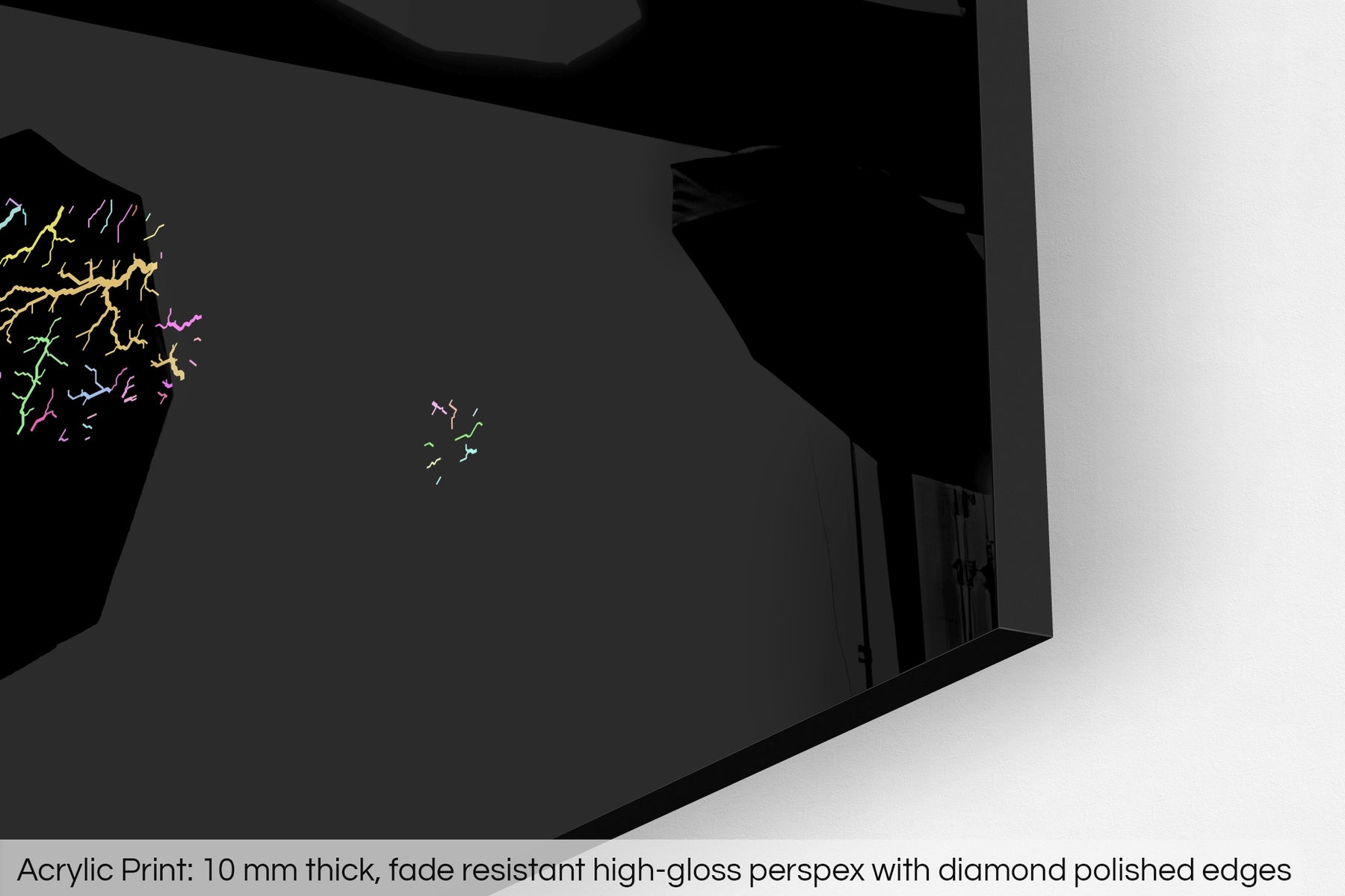 A fine art Giclée print is hand mounted onto 10mm thick high-gloss acrylic perspex that will protect your map from harmful UV light, keeping colours fresh and vivid for years to come. Ready to hang with an invisible floating frame.
