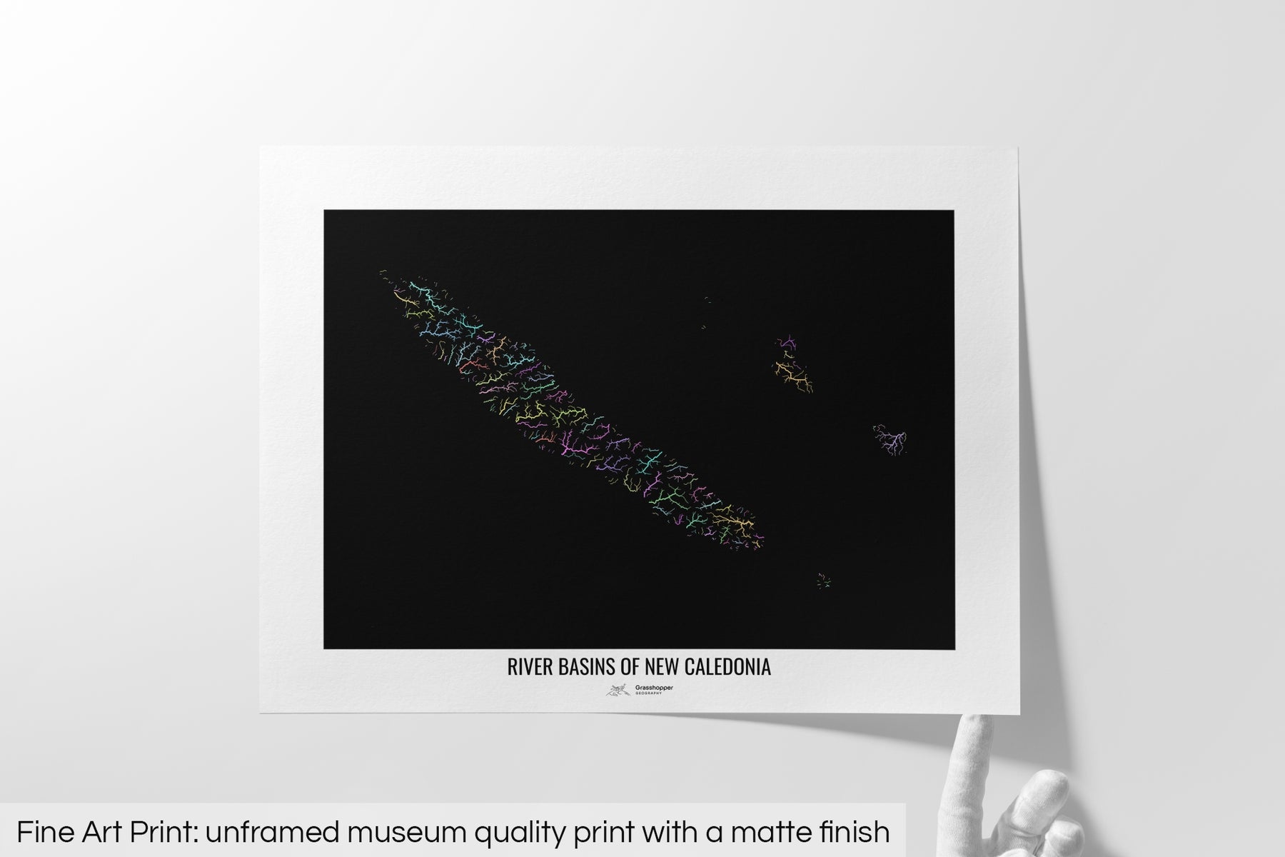 New Caledonia - River basin map, pastel colours - Wall Art