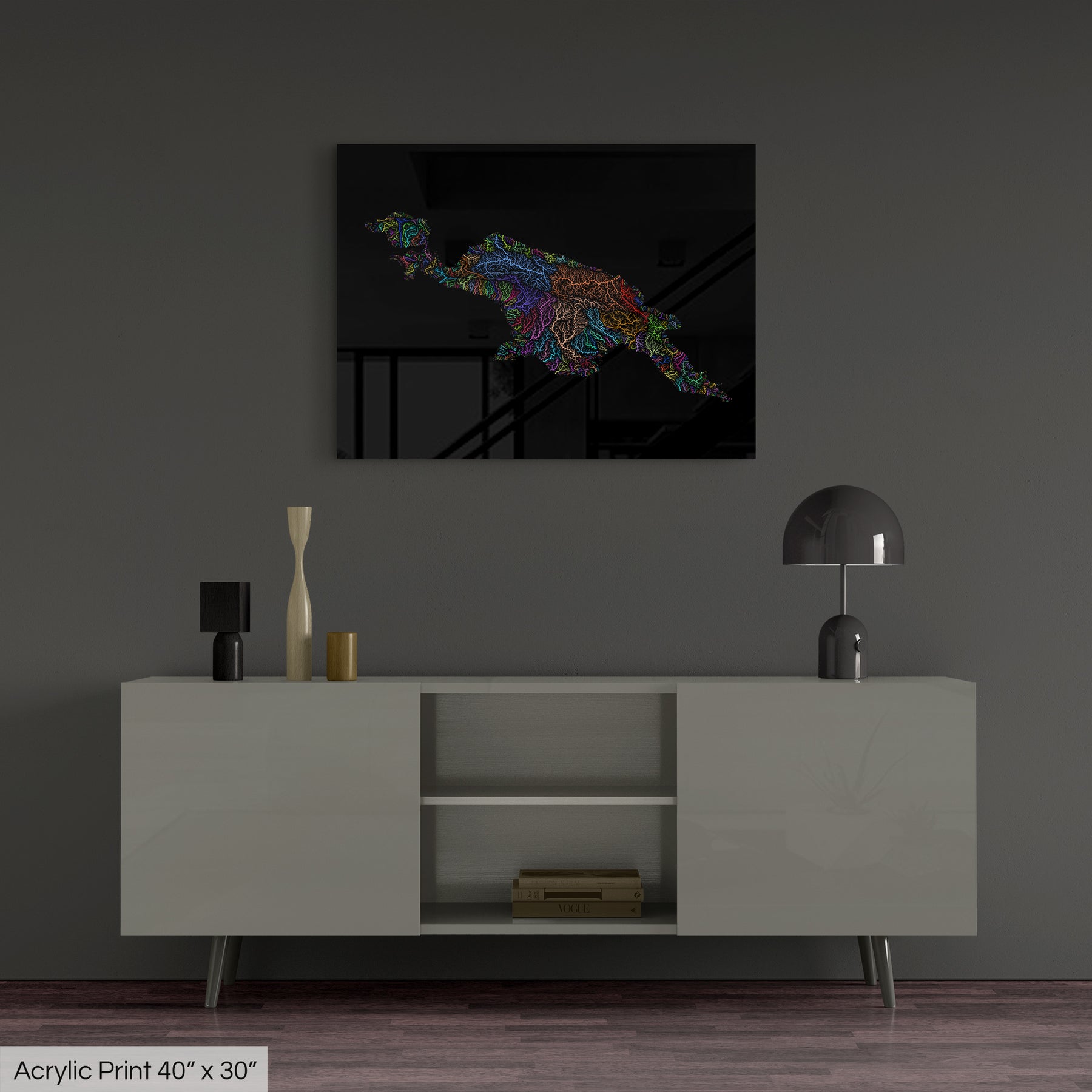 The fine art Giclée print is hand mounted onto a 10mm thick, premium polished, high-gloss acrylic glass that results in a vibrant finish. The transparency of the acrylic enhances the colours and details of the artwork, creating a stunning visual effect that will make a bold statement in any space.
