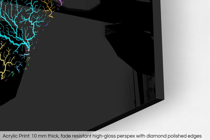 North Carolina - River basin map, rainbow colours - Wall Art