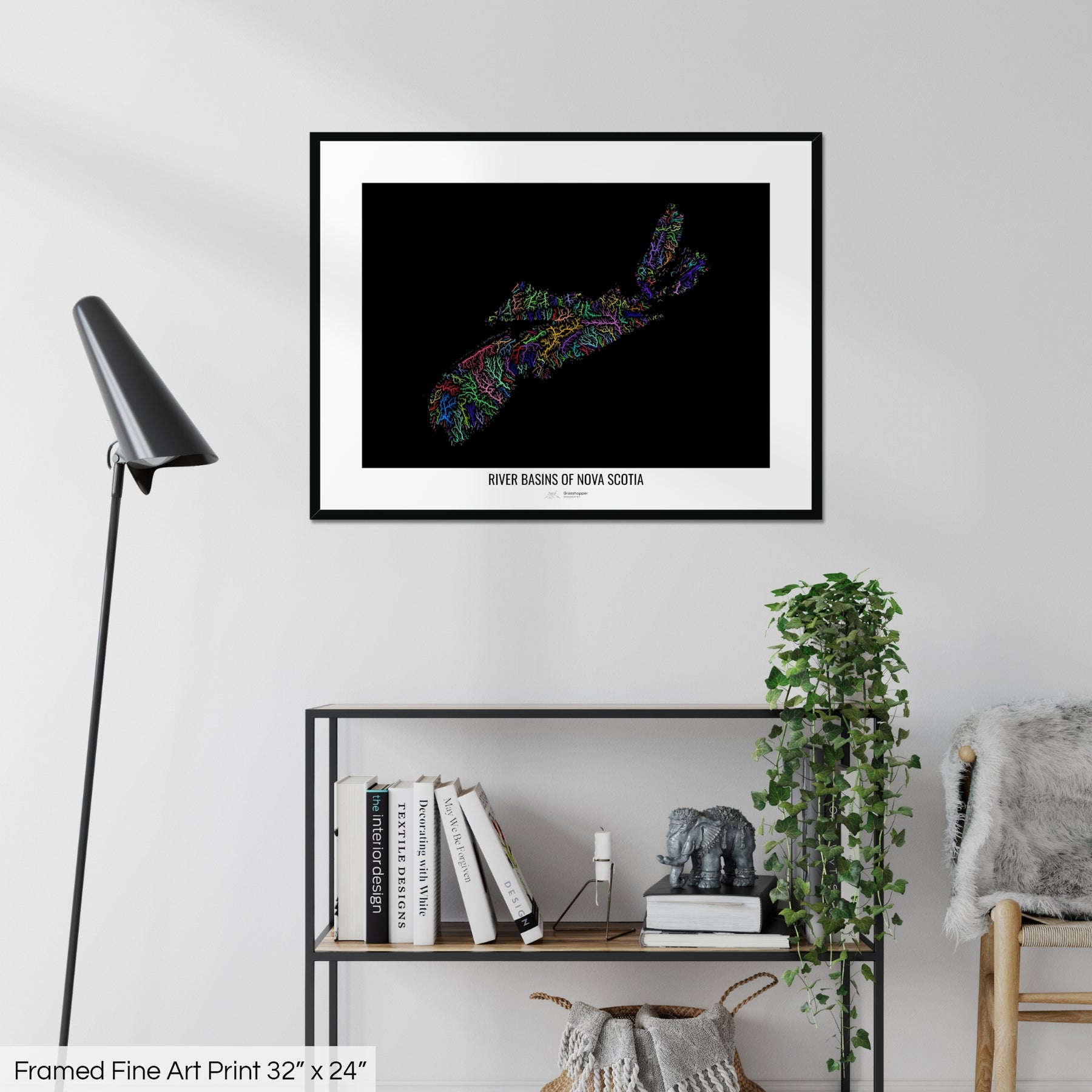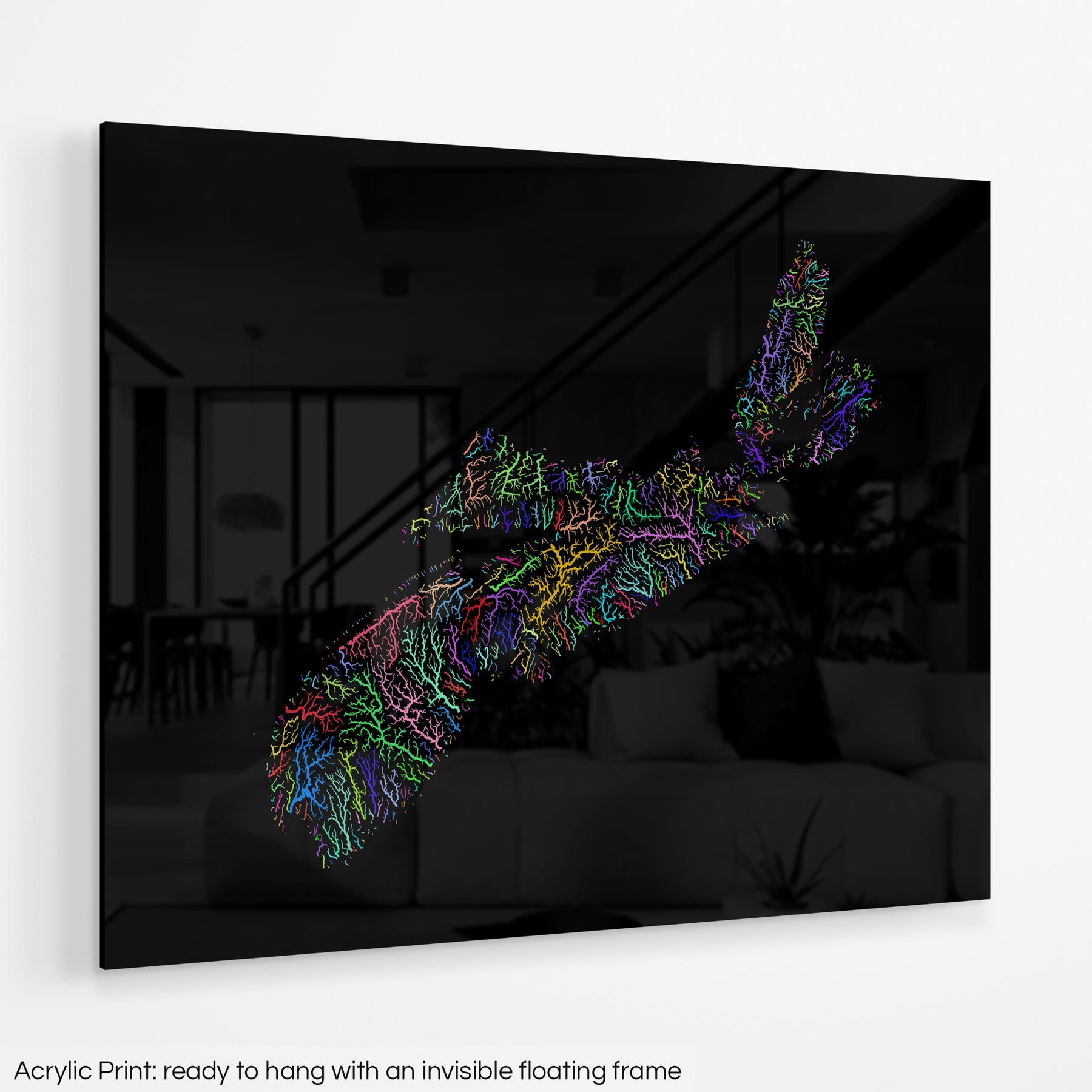 Nova Scotia - River basin map, rainbow colours - Wall Art