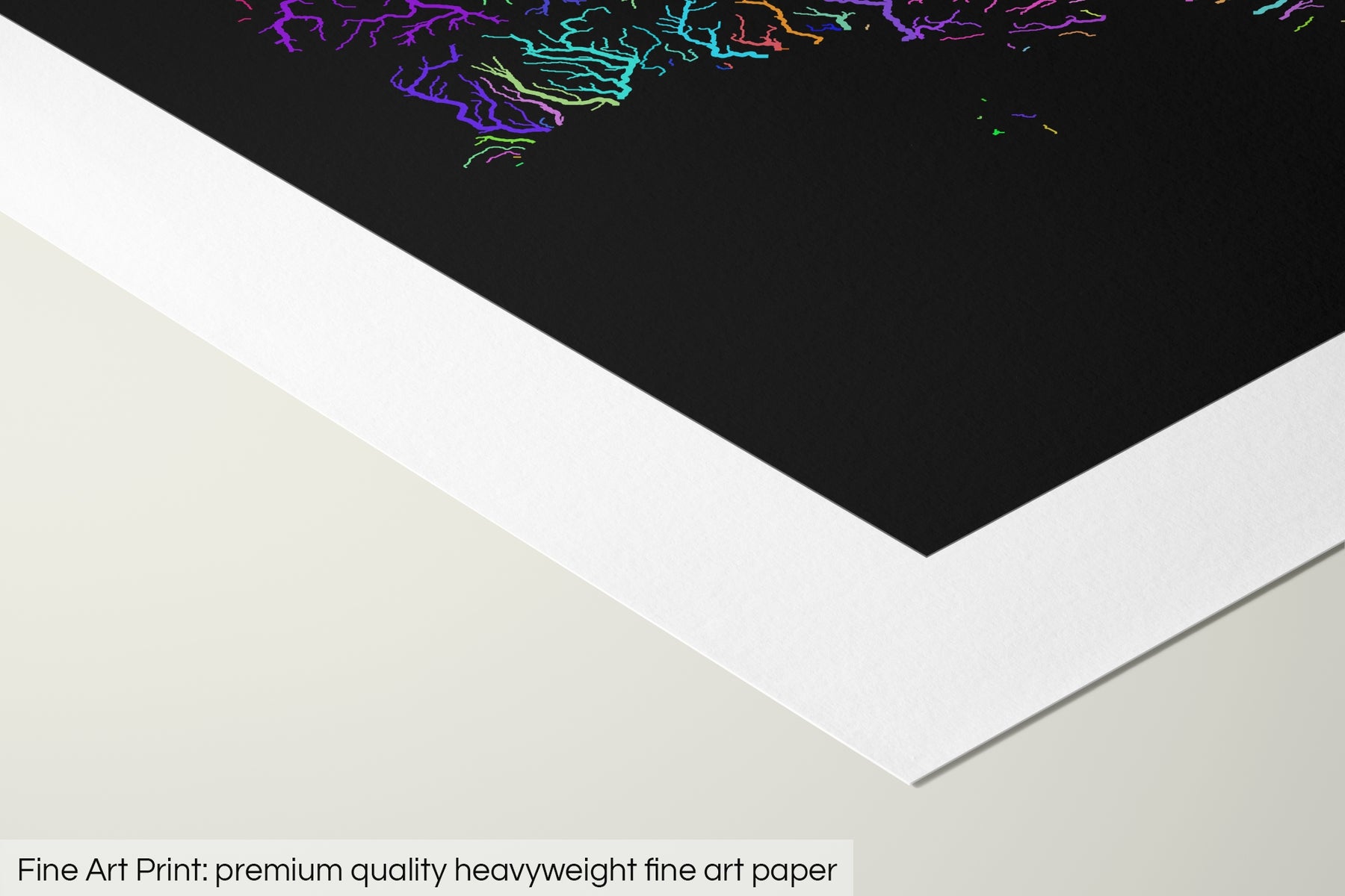 Discover the hidden beauty of Earth's water systems with this stunning river basin map from Grasshopper Geography. Each vibrant watershed is uniquely coloured to reveal the intricate network of drainage basins that shape our world. Perfect for geography enthusiasts, teachers, nature lovers, and anyone fascinated by hydrology and cartography, this museum-quality print transforms complex data into a captivating work of art. Whether you're decorating your home, office, or classroom, this unique piece sparks conversation and celebrates the natural world. Printed on demand with eco-friendly materials locally in the US, UK, EU, Canada, or Australia to avoid or minimize customs fees and ensure fast delivery. Free worldwide shipping included.