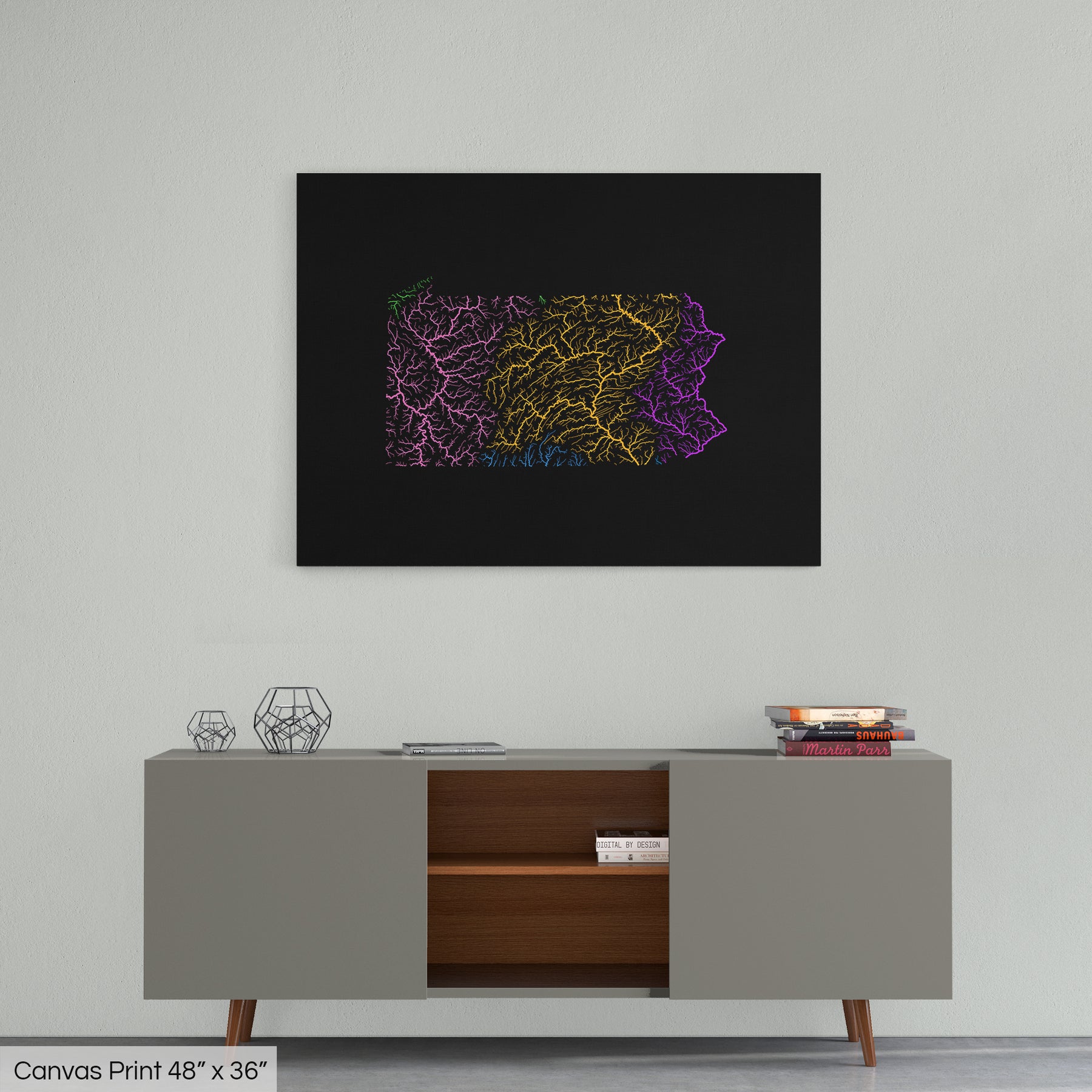 Pennsylvania - River basin map, rainbow colours - Wall Art