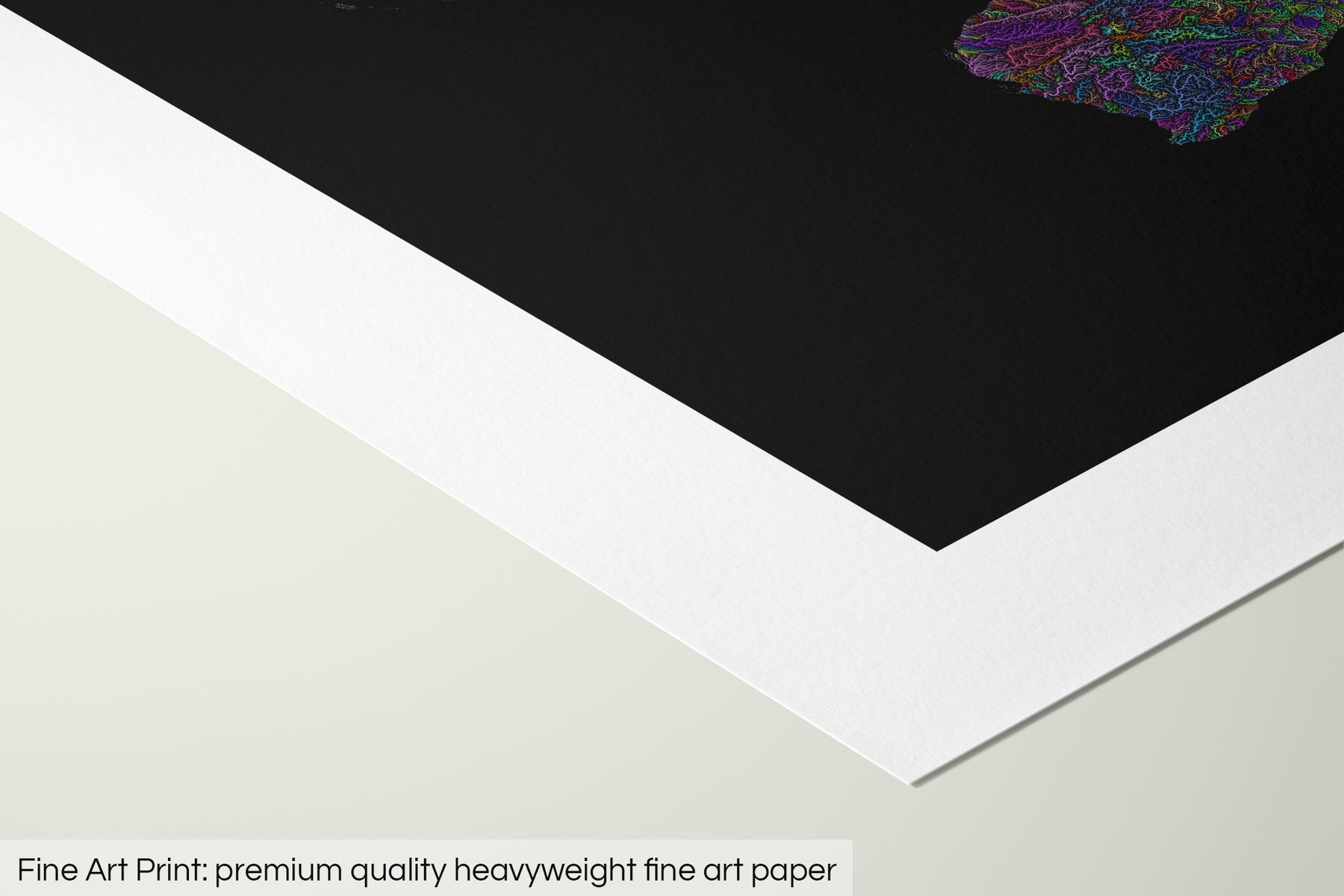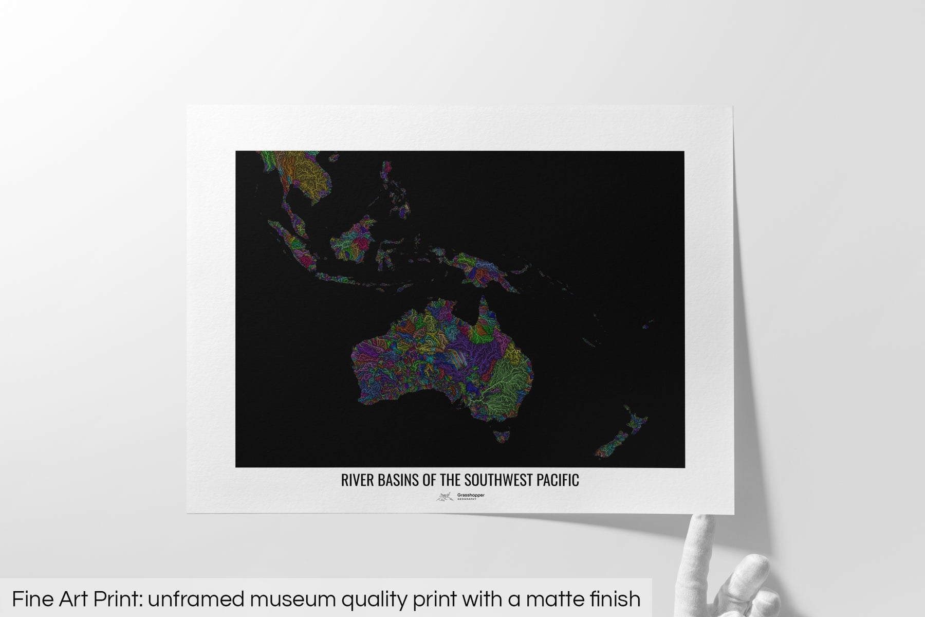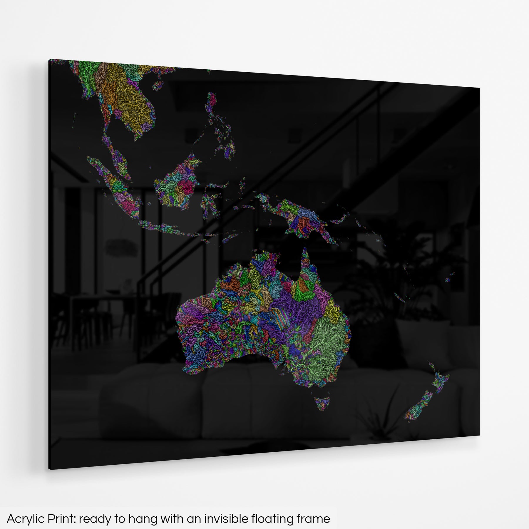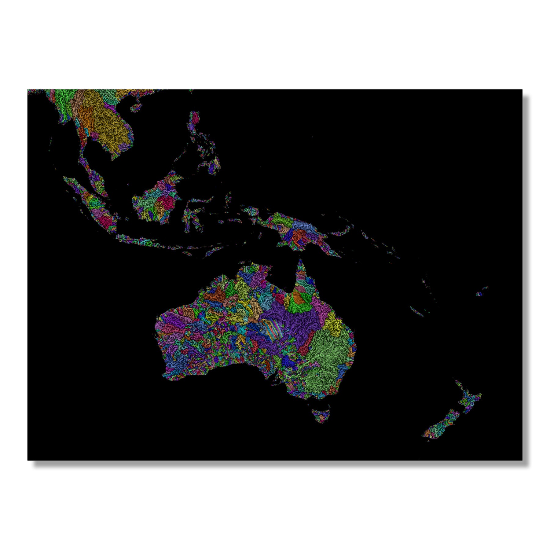 Southwest Pacific - River basin map, rainbow colours - Wall Art