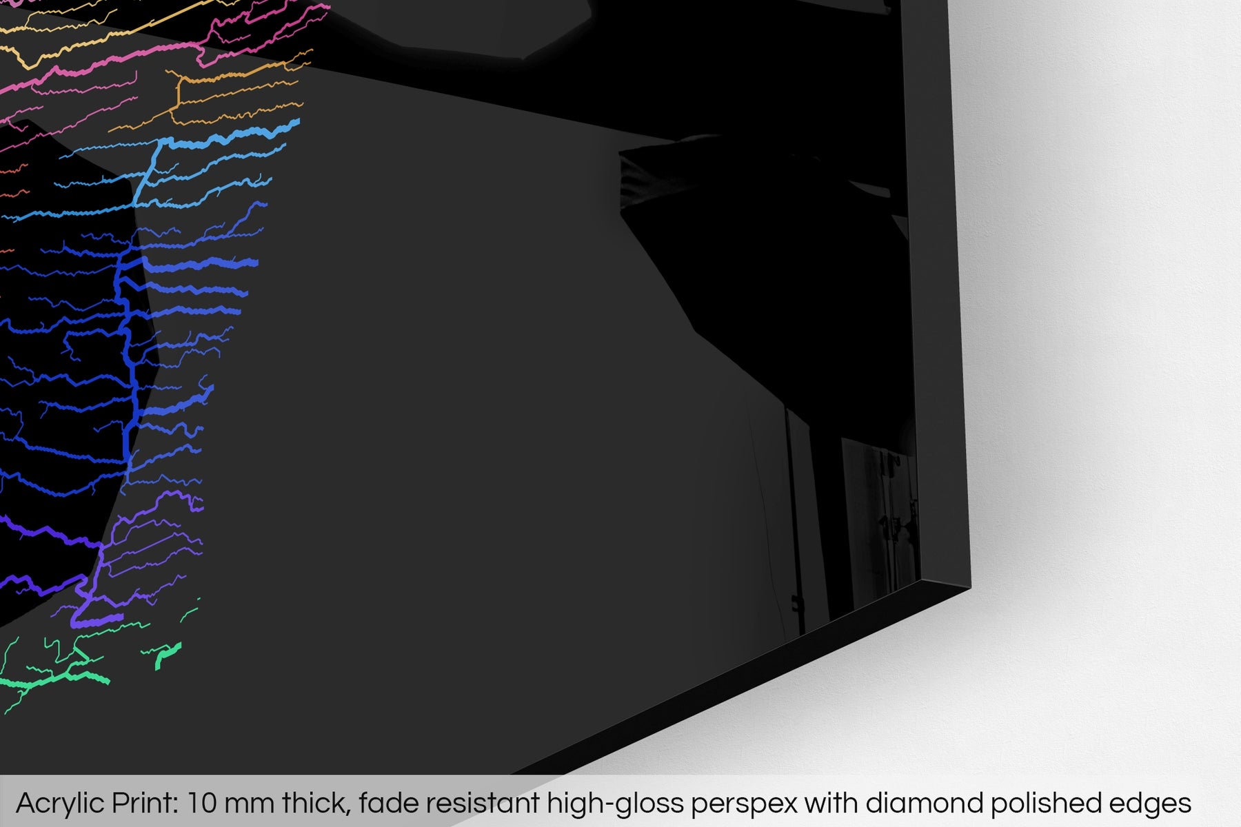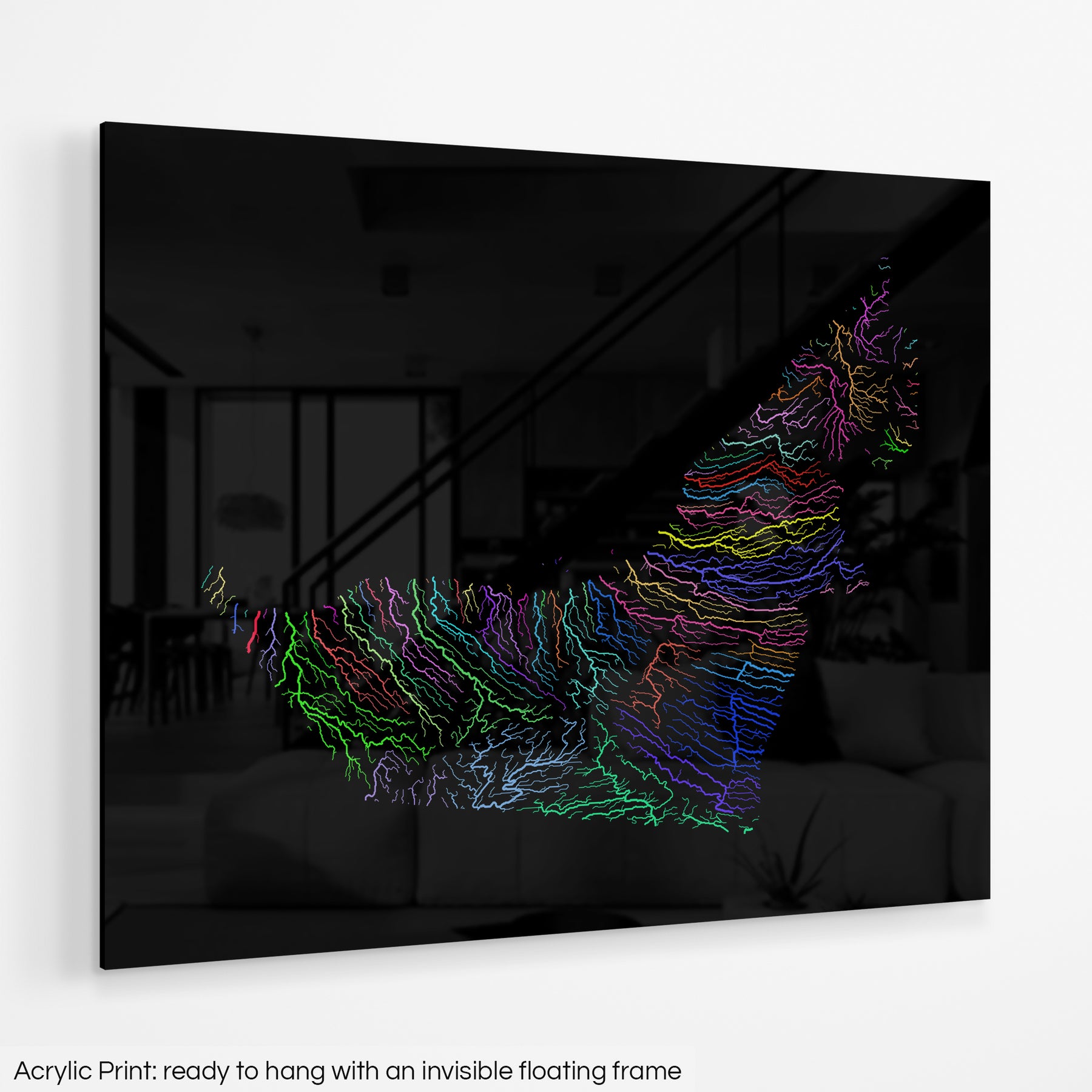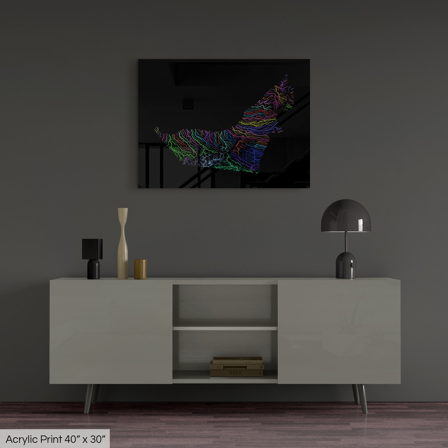 United Arab Emirates - River basin map, rainbow colours - Wall Art