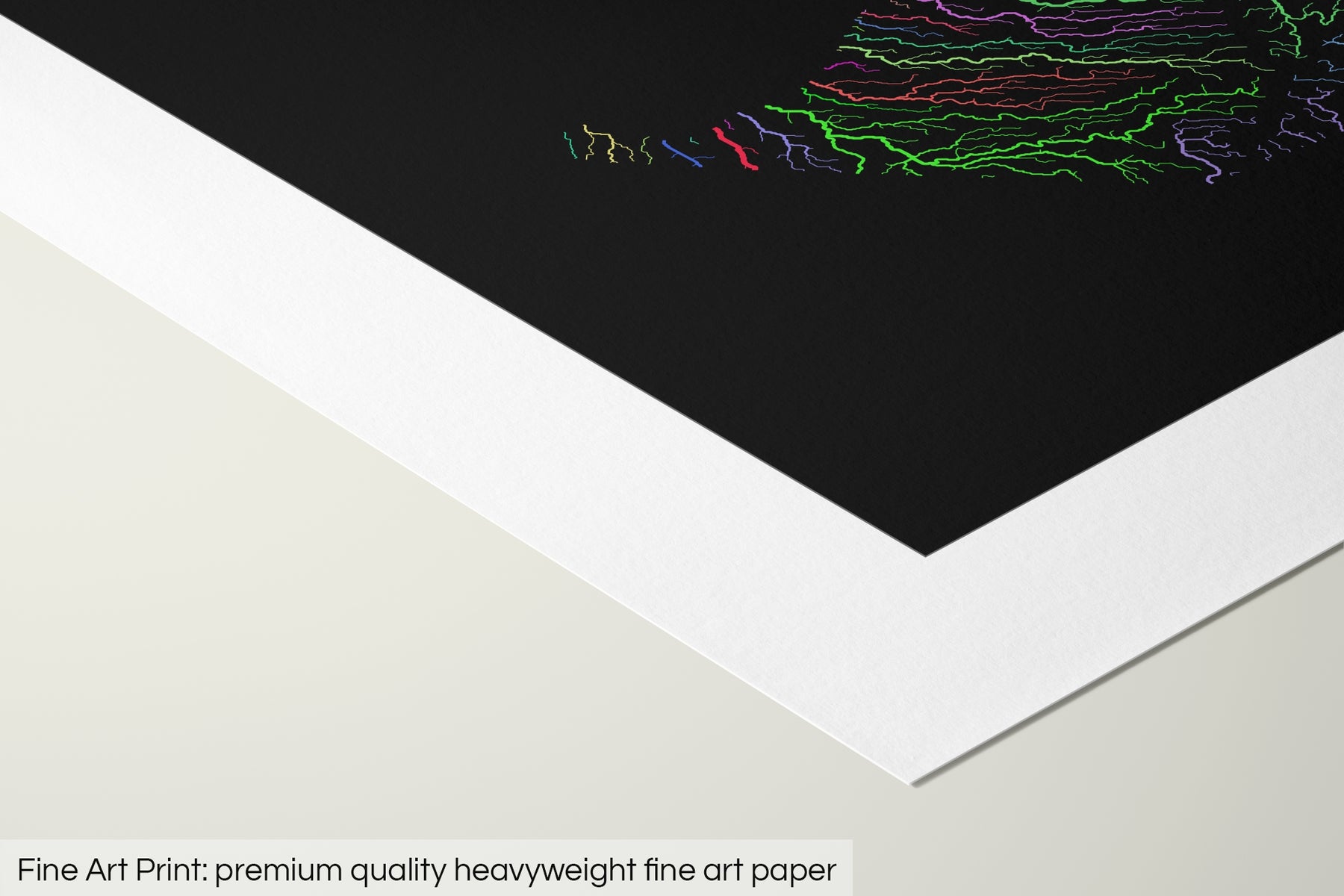 Discover the hidden beauty of Earth's water systems with this stunning river basin map from Grasshopper Geography. Each vibrant watershed is uniquely coloured to reveal the intricate network of drainage basins that shape our world. Perfect for geography enthusiasts, teachers, nature lovers, and anyone fascinated by hydrology and cartography, this museum-quality print transforms complex data into a captivating work of art. Whether you're decorating your home, office, or classroom, this unique piece sparks conversation and celebrates the natural world. Printed on demand with eco-friendly materials locally in the US, UK, EU, Canada, or Australia to avoid or minimize customs fees and ensure fast delivery. Free worldwide shipping included.
