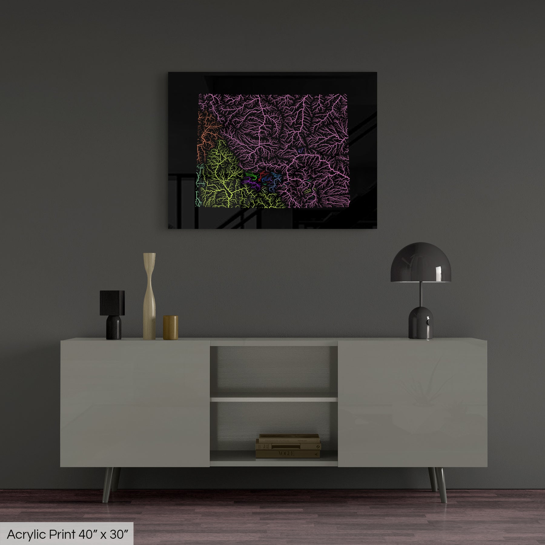 The fine art Giclée print is hand mounted onto a 10mm thick, premium polished, high-gloss acrylic glass that results in a vibrant finish. The transparency of the acrylic enhances the colours and details of the artwork, creating a stunning visual effect that will make a bold statement in any space.